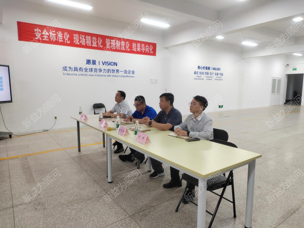 河北某紡織實業公司精益班組管理項目第二期第2階段總結會于近日上午在技術中心會議中心成功舉行。公司副總經理、項目領導小組副組長劉總,生產管理部部長、項目推進辦主任張主任和新益為顧問團隊的2位老師到場參會。