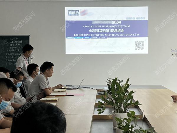 近日,越南某家居公司在會議室召開了6S管理項目第一期總結大會,對本期6S工作開展以來進行回顧與總結,此次參會的有越南某家居公司總經理張總,推進辦主任范總,新益為顧問團隊,推進辦公室成員,以及推進小組各成員。會議一開始,參會人員首先觀看了第一期總結視頻,回顧改善歷程,雖然生產繁忙,但并沒有消減大家改善的熱情與減緩改善的進度。各團隊的現場也發生了很大的變化。然后參會全體人員一起宣讀了方針與口號。